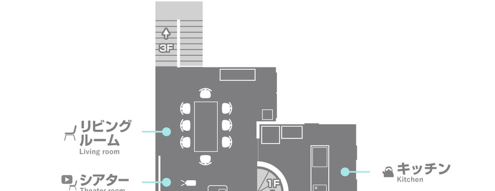 2F:リビング、キッチン